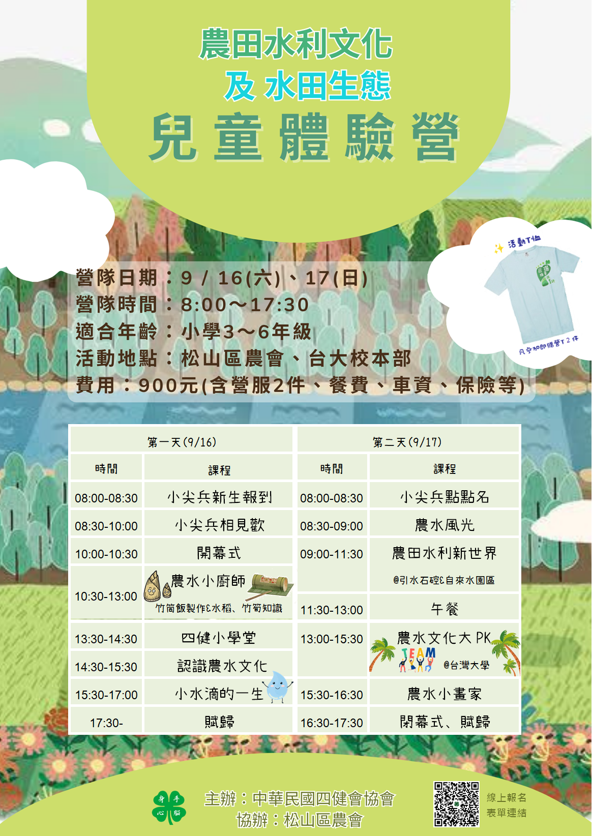 一、本會將於112年9月16日至17日,舉辦「2023農田水利文化 及水田生態兒童體驗營活動」。