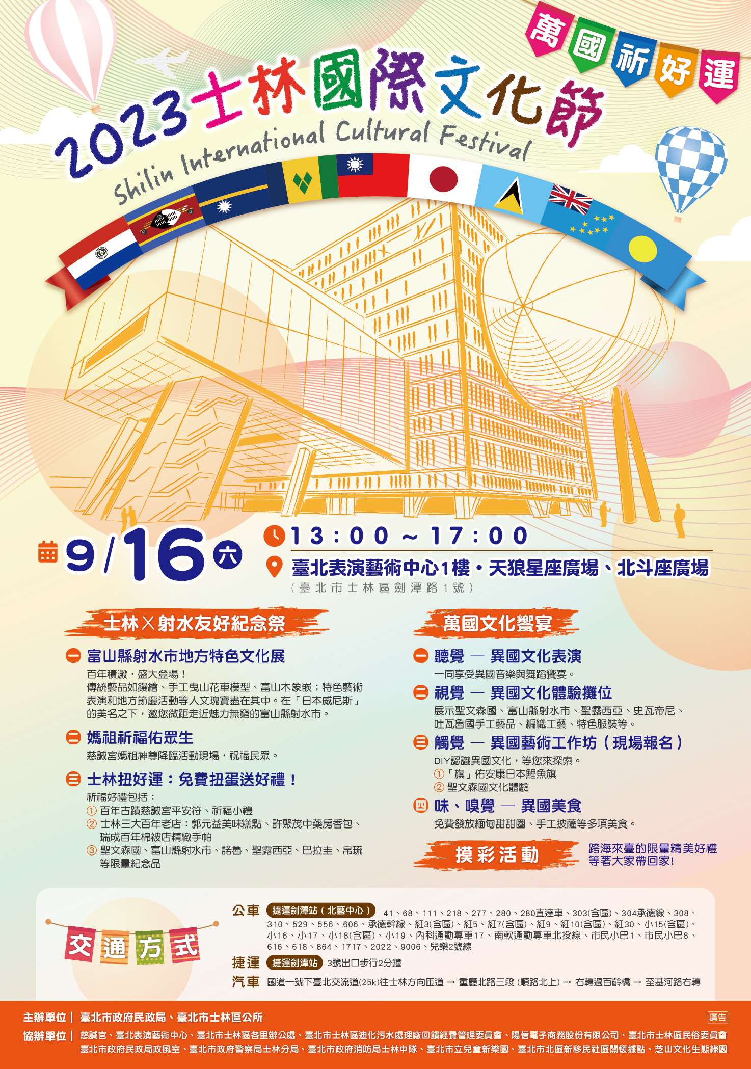 2023士林國際文化節9/16(六)在北藝中心 熱鬧開趴。