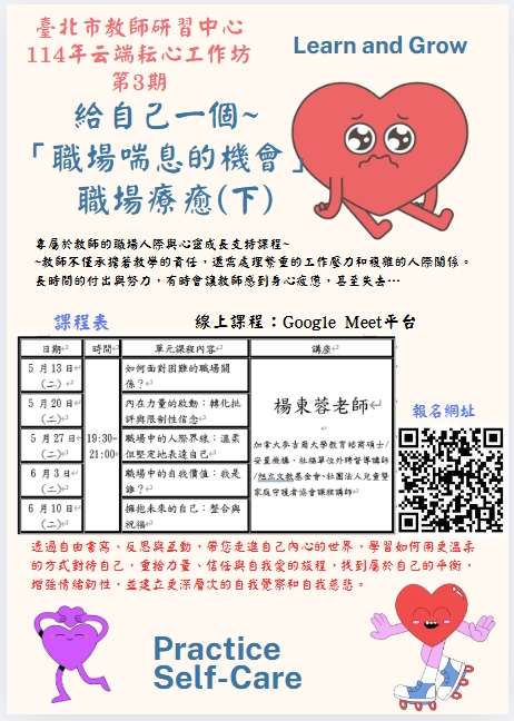 🧾透過自由書寫、反思與互動,在兩期、十堂課中,由楊東蓉老師引導您走進自己內心的世界,學習如何用更溫柔的方式對待自己,讓您不再感到孤單,讓我們一同在這段旅程中,重拾力量,找到屬於自己的平衡,增強情緒韌性,並建立更深層次的自我覺察和自我慈悲。