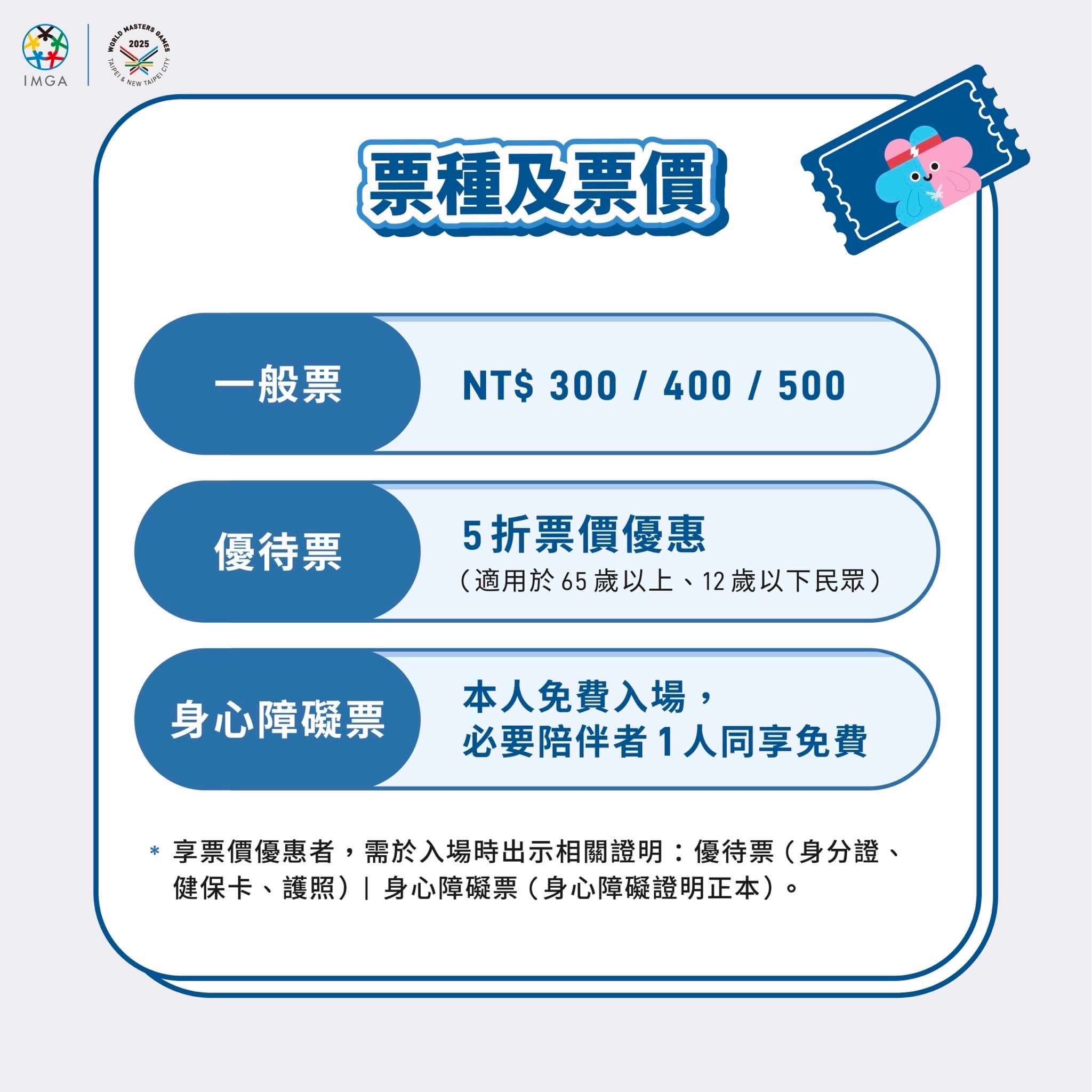 票價 NT$300 / NT$400 / NT$500
