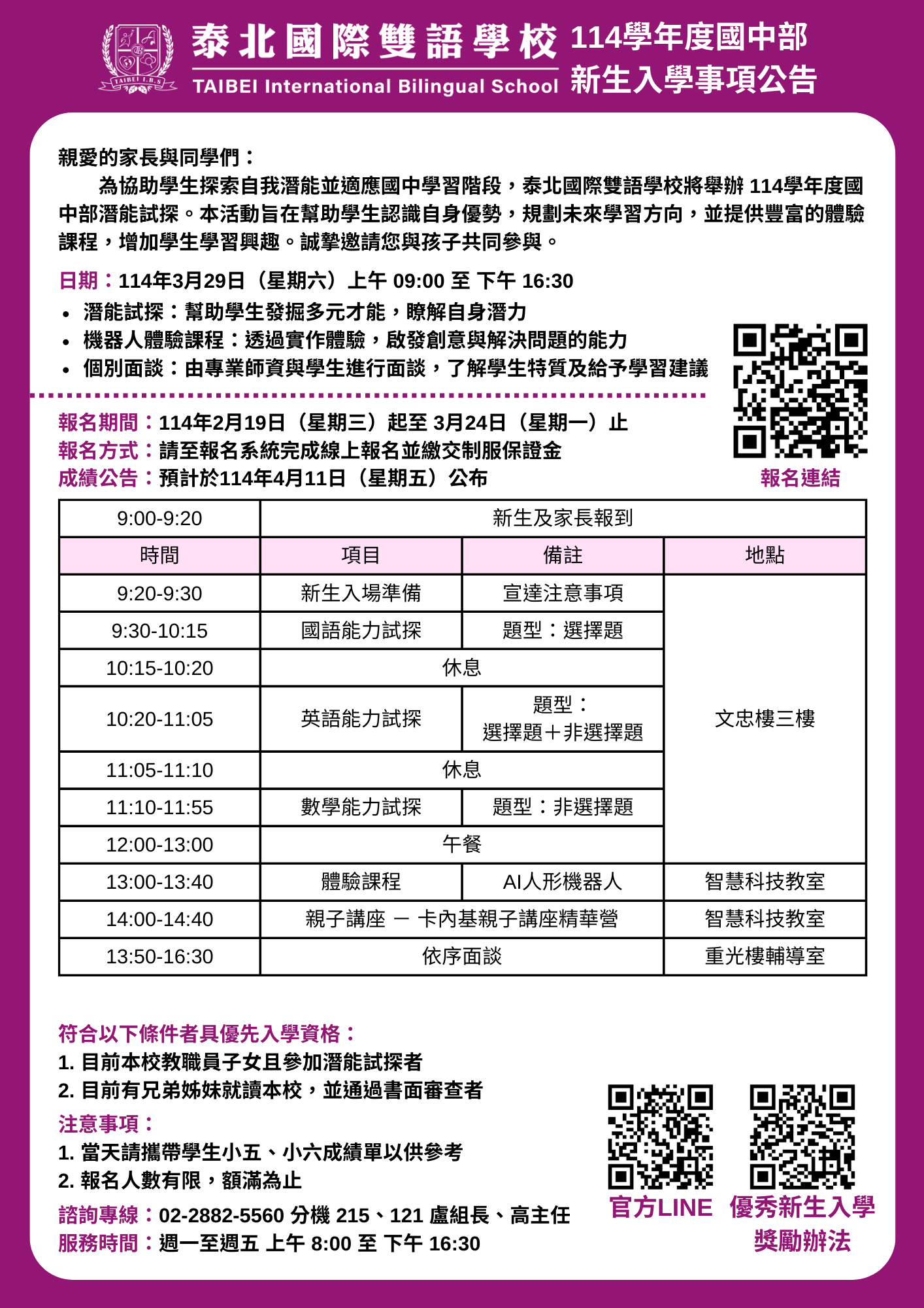 詳細資訊請見附件,誠摯邀請學生家長參加。