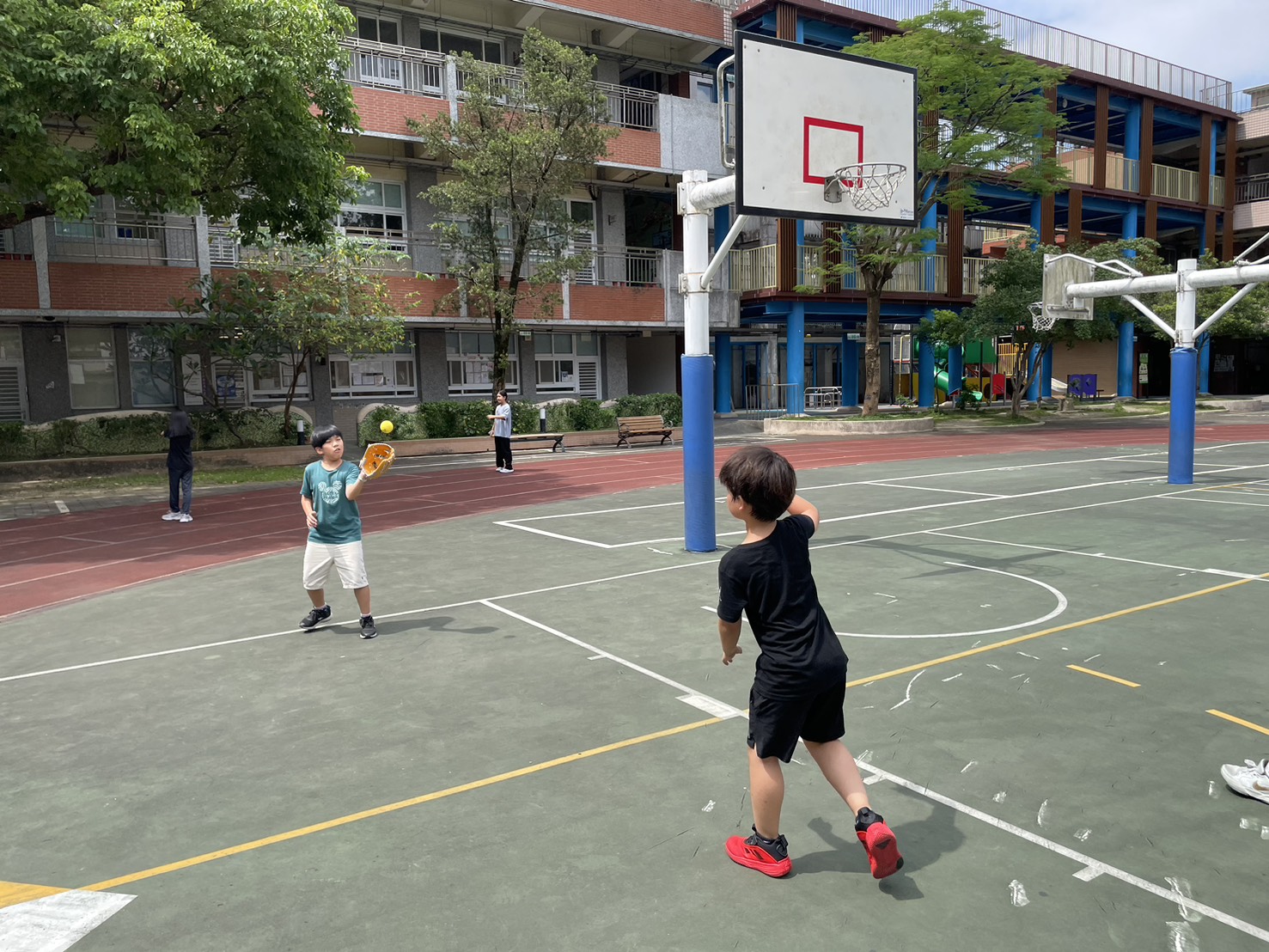 今天在陳建佑老師的帶領下,小朋友用迷你棒球球具學習打擊、守備、跑壘等技巧